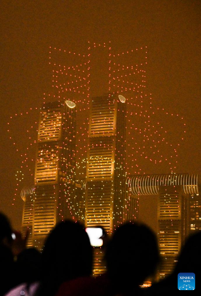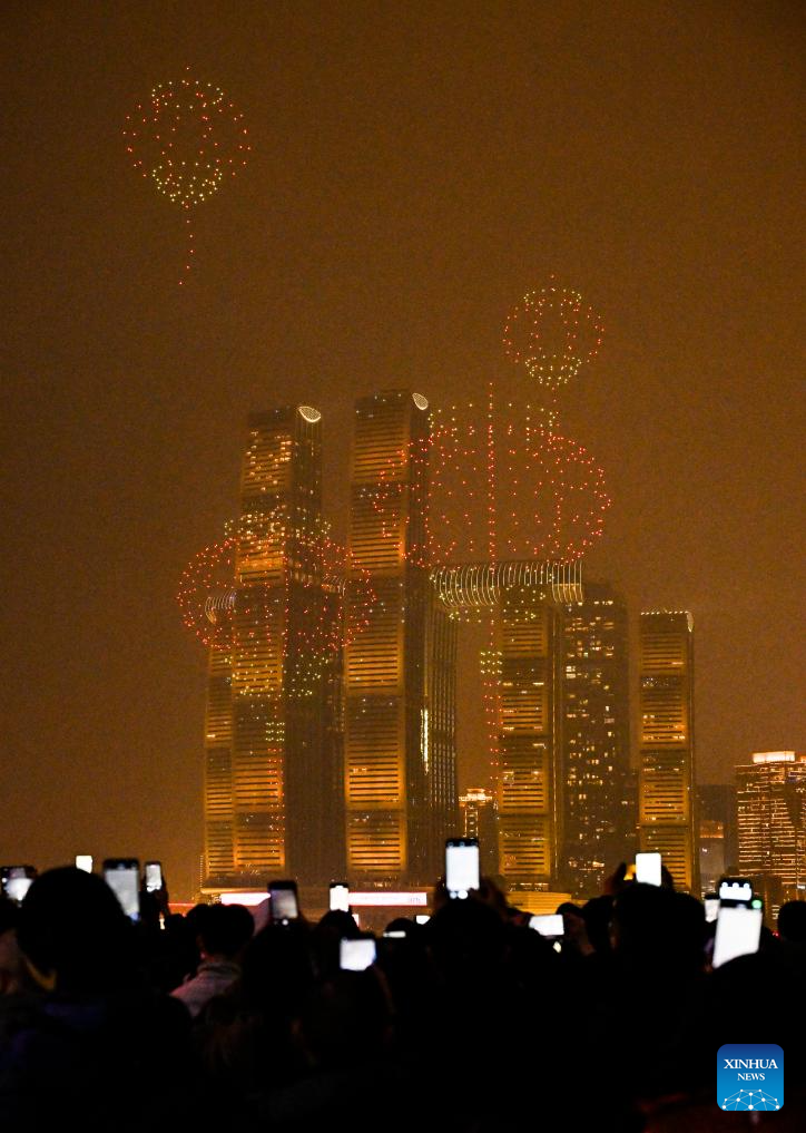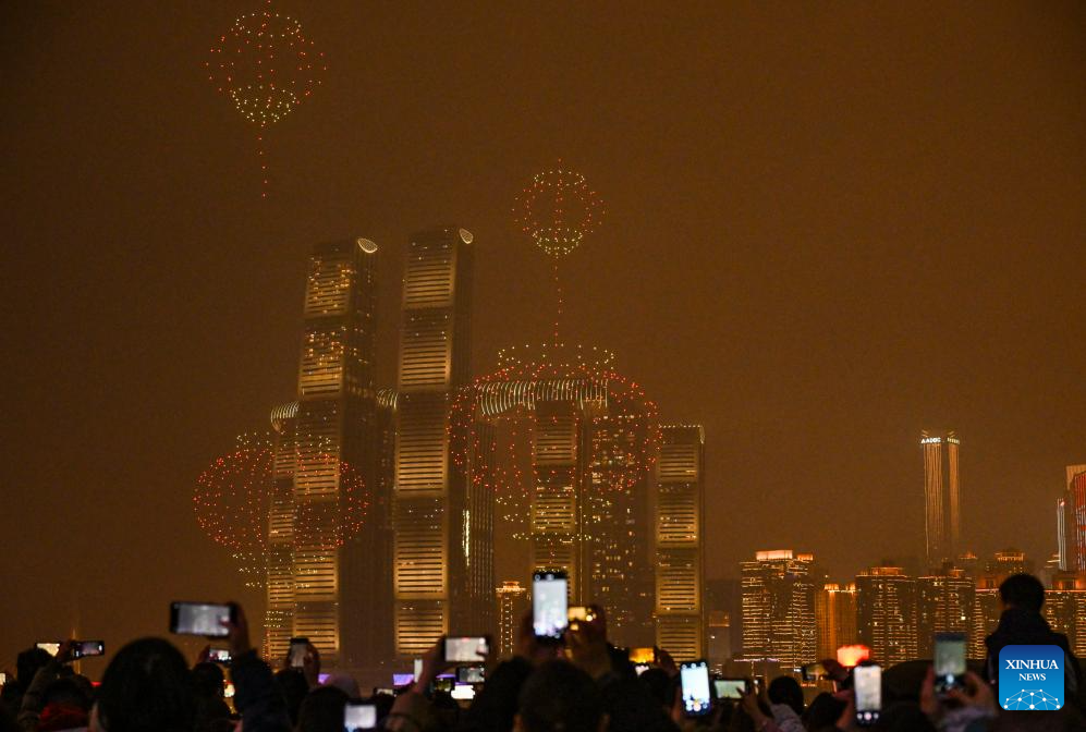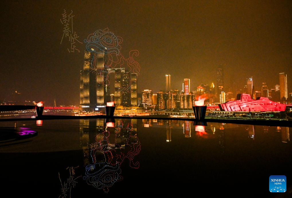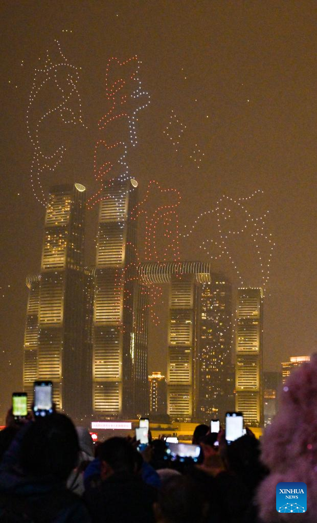 A drone light show is staged in Chongqing, southwest China, Feb. 1, 2025. (Xinhua/Wang Quanchao)