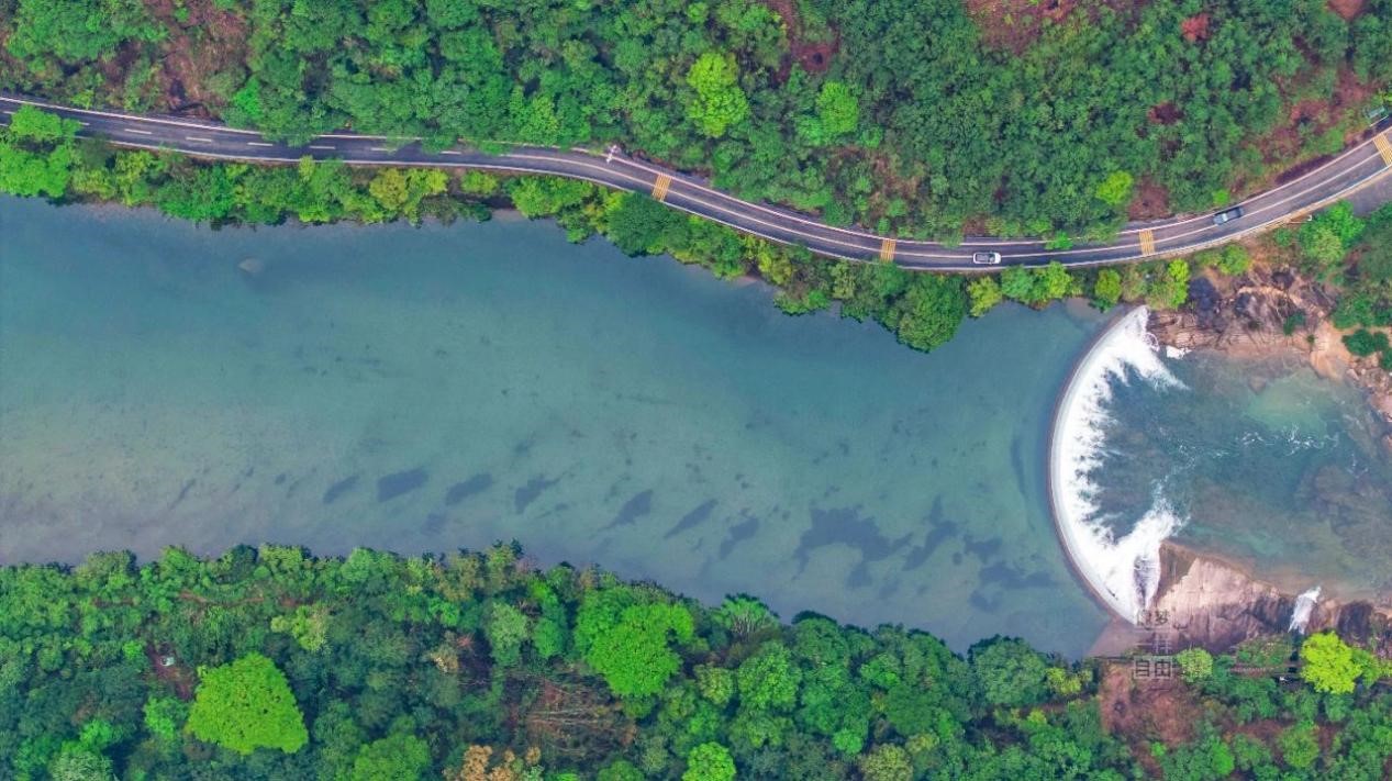Photo shows an aerial view of the No. 1 Scenic Byway in Wuyishan National Park, a national 5A-level scenic area in southeast China. (Photo/Sun Kaiyan)