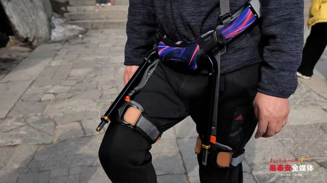 According to a staff member from Taishan Cultural Tourism Group, the exoskeleton is designed to help users ascend Mount Taishan and can also be utilized for activities such as fitness, running, walking and climbing stairs.