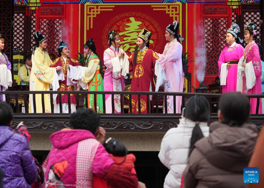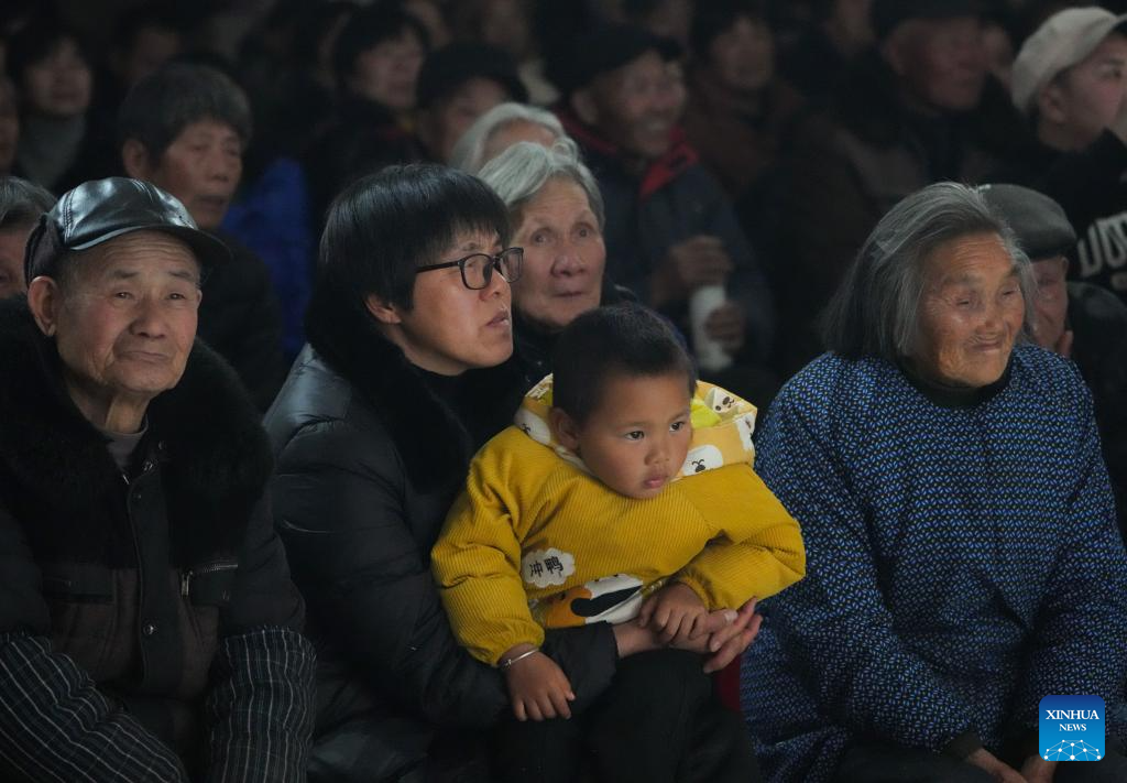 Villagers enjoy Shaoxing Opera performance in Lianzeng Village of Shaoxing City, east China's Zhejiang Province, Jan. 25, 2025. Shaoxing opera, also known as Yue opera, emerged in the early 1900s in east China's Zhejiang Province. Around the Spring Festival, opera troupes are busy performing at theaters, cultural halls, and temple fairs, creating a vibrant and festive atmosphere.