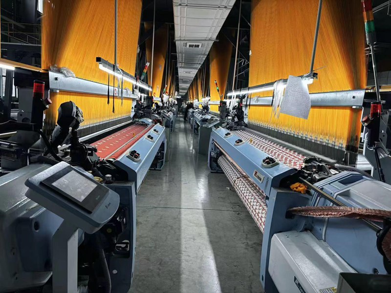 Photo shows machines producing Chinese-style fabrics inside the production workshop of a textile company in Shaoxing city, east China's Zhejiang Province, Jan. 8, 2025. (Photo/Xu Jiadan)