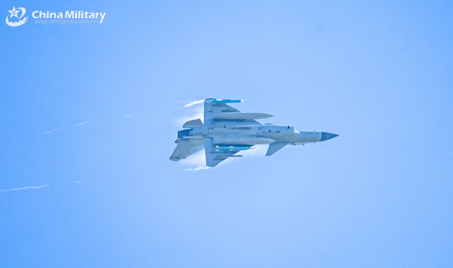 A J-10C fighter jet attached to an aviation brigade with the air force under the Chinese PLA Southern Theater Command flies to the designated airspace during a flight training exercise in early January, 2025. (eng.chinamil.com.cn/Photo by Xiao Rui)