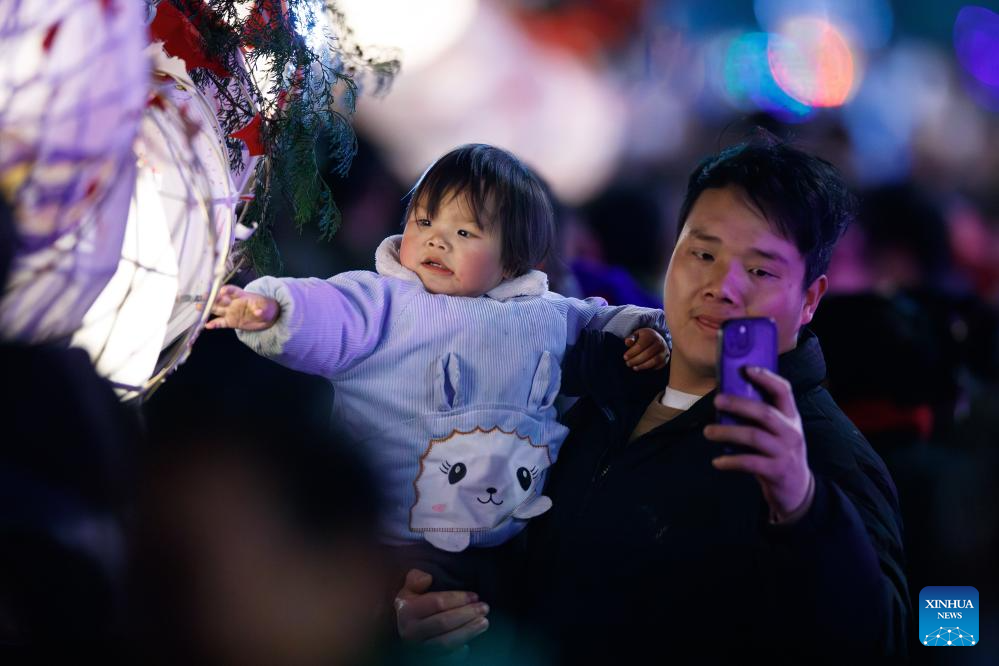 A little girl touches a dragon lantern in Shibing County of Qiandongnan Miao and Dong Autonomous Prefecture, southwest China's Guizhou Province, Feb. 6, 2025. "Shibing dragon lantern", a provincial intangible cultural heritage in Guizhou, is a festive dragon lantern dance in Shibing County and featured by the fantastic performance amid fireworks. In recent years, the dragon lantern parade has become a cultural icon of Shibing, attracting numerous tourists during holidays. (Xinhua/Liu Xu)