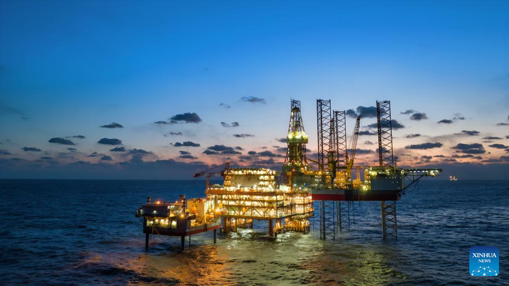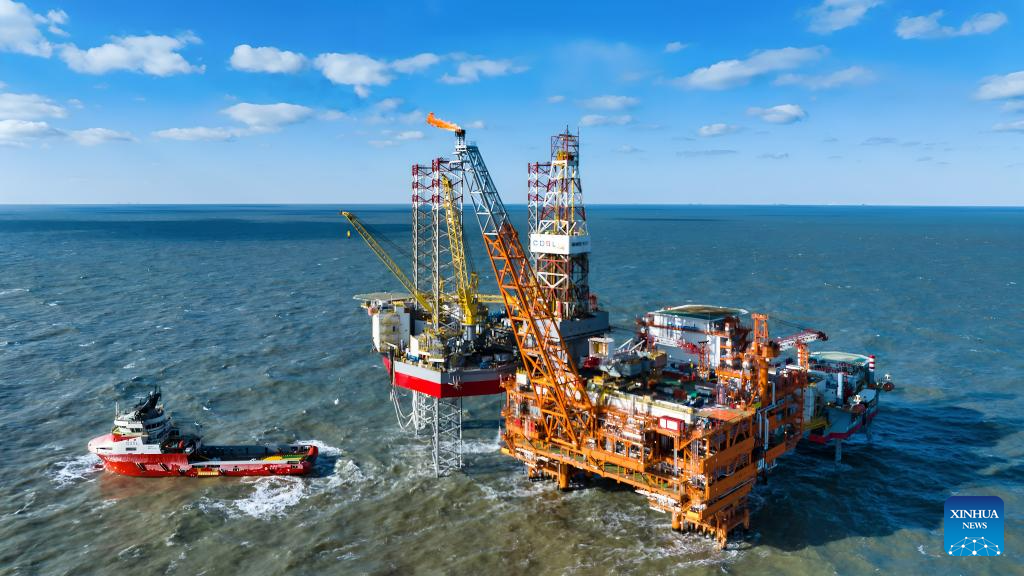 The Bozhong 26-6 oilfield is located in the Bohai Sea, about 170 km from north China's Tianjin Municipality, with an average water depth of about 20 meters. Discovered in 2022, its cumulative proven oil and gas reserves has exceeded 200 million cubic meters. (Photo by Du Penghui/Xinhua)