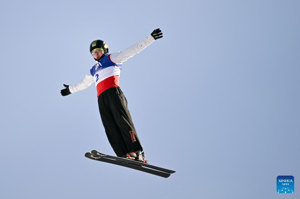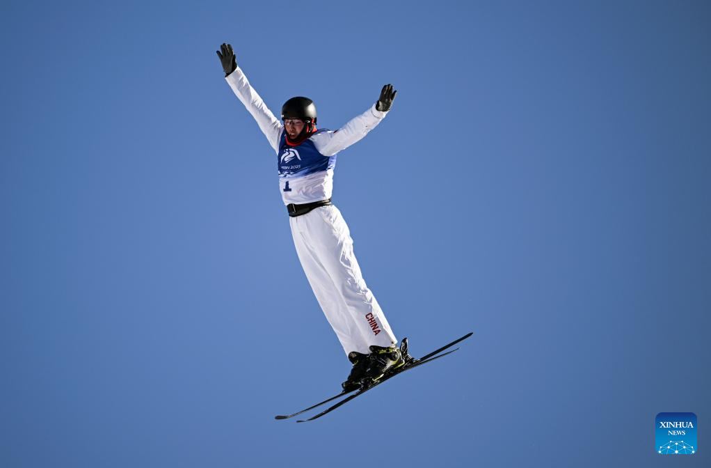Qi Guangpu of China competes during the Freestyle Skiing men's aerials final match at the 9th Asian Winter Games in Yabuli, northeast China's Heilongjiang Province, Feb. 9, 2025. (Xinhua/Xia Yifang)