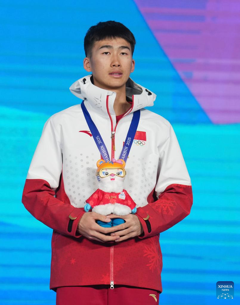 Gold medalist Buluer of China poses during the awarding ceremony after the ski mountaineering men's sprint final at the 9th Asian Winter Games in Yabuli, northeast China's Heilongjiang Province, Feb. 9, 2025. (Xinhua/Wang Song)