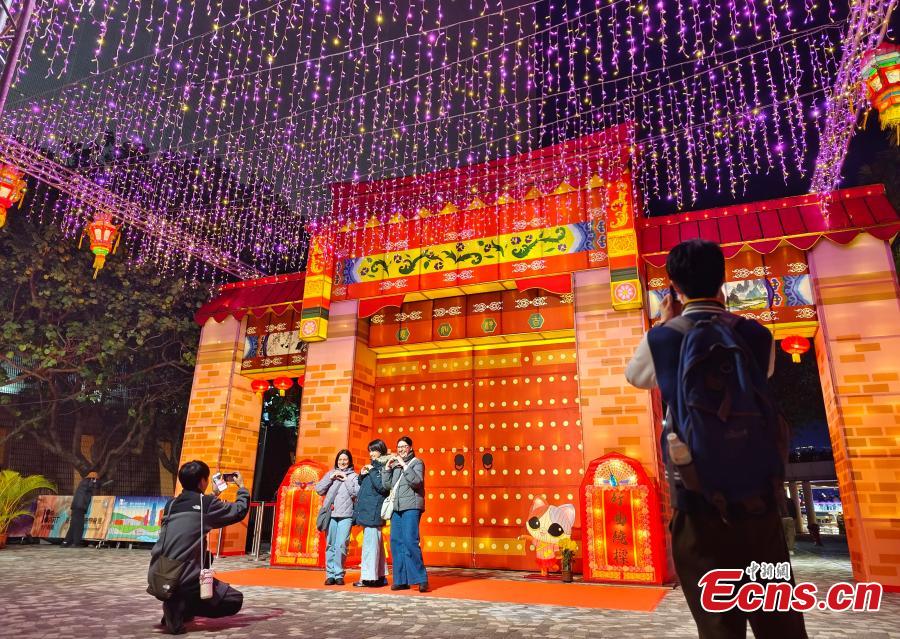 Dazzling lanterns are displayed at Hong Kong Cultural Center ahead of the Lantern Festival in the Hong Kong Special Administrative Region, Feb. 9, 2025. (China News Service/Hou Yu)