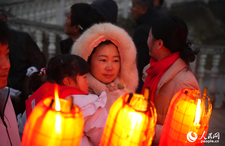 People watch a lantern show in Tuanbei village, Anyi county, Nanchang city, east China's Jiangxi Province. (People's Daily Online/Mao Siyuan)