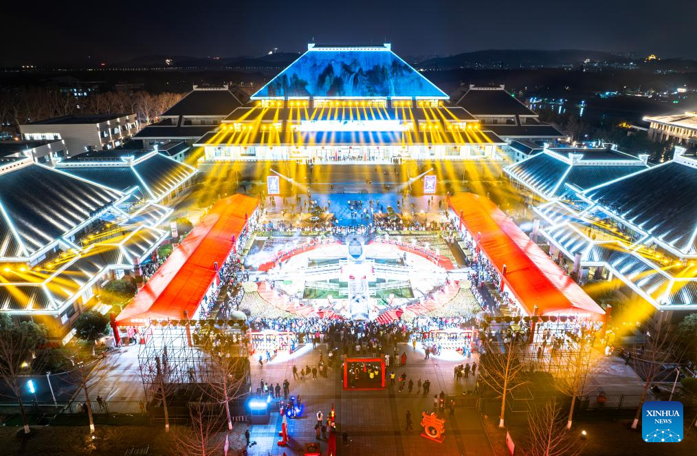An aerial drone photo taken on Feb. 12, 2025 show people visiting a lantern fair held at the Hubei provincial museum in Wuhan, central China's Hubei Province. Various activities were held across China to celebrate the Lantern Festival, which falls on the fifteenth day of the first month of the Chinese lunar calendar. (Xinhua/Xiao Yijiu)