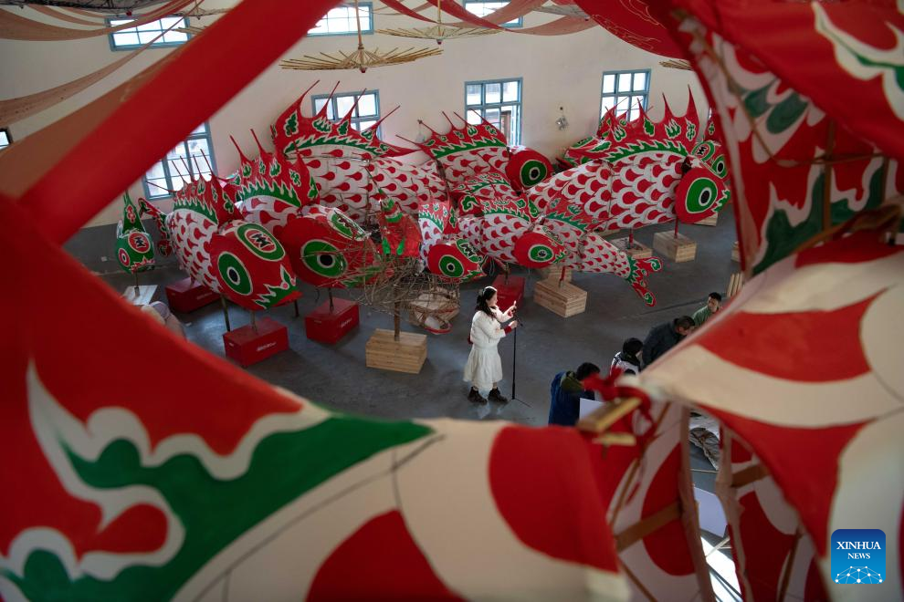 A villager makes fish-shaped lanterns in Wangmantian Village of Xitou Town in Shexian County, Huangshan City of east China's Anhui Province, Feb. 10, 2025. Local villagers have the tradition to make fish-shaped lanterns to pray for harvest and good fortune and parade with them cheerfully around the Lantern Festival, which falls on the 15th day of the first month of the Chinese lunar calendar, or Feb. 12 this year. (Photo by Shi Yalei/Xinhua)