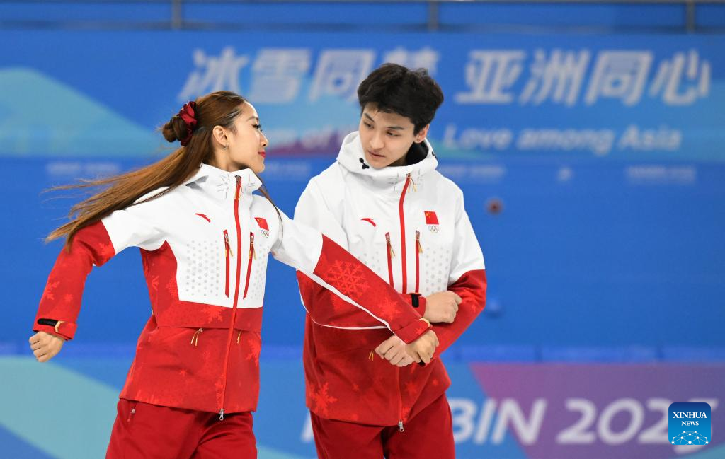 HARBIN, Feb. 12 (Xinhua) -- Ren Junfei and Xing Jianing secured China's first figure skating medal in the ice dance event at the Harbin Asian Winter Games, while Cidanyuzhen and Buluer led Chinese skiers to a podium sweep in the ski mountaineering mixed relay on Wednesday.