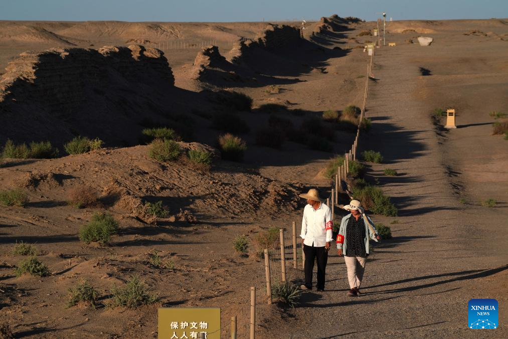 Tourists visit the site of Yumen Pass in Dunhuang, northwest China's Gansu Province, Sept. 4, 2024. Around 2,000 years ago, Dunhuang was a key hub on the ancient Silk Road. Chinese silk and tea passed through this gateway en route to other countries, while agricultural products such as grapes, carrots and pomegranates made their way into China.