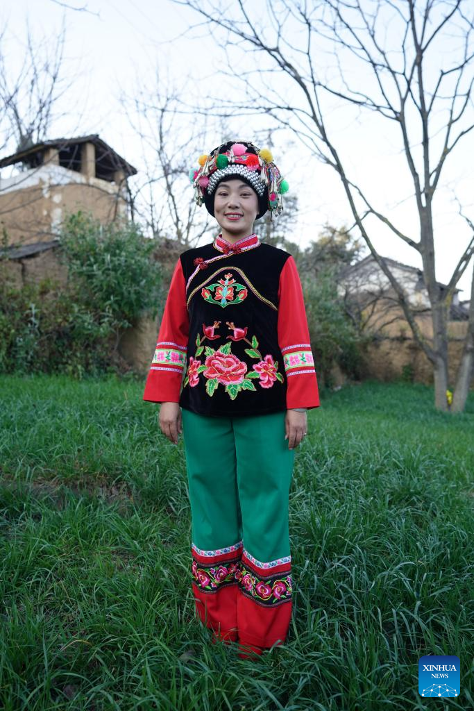 Lu Lihua poses for a photo at Yongzheng Village of Baohua Town in Nanjian Yi Autonomous County, southwest China's Yunnan Province, Feb. 7, 2025. (Xinhua/Chen Xinbo)