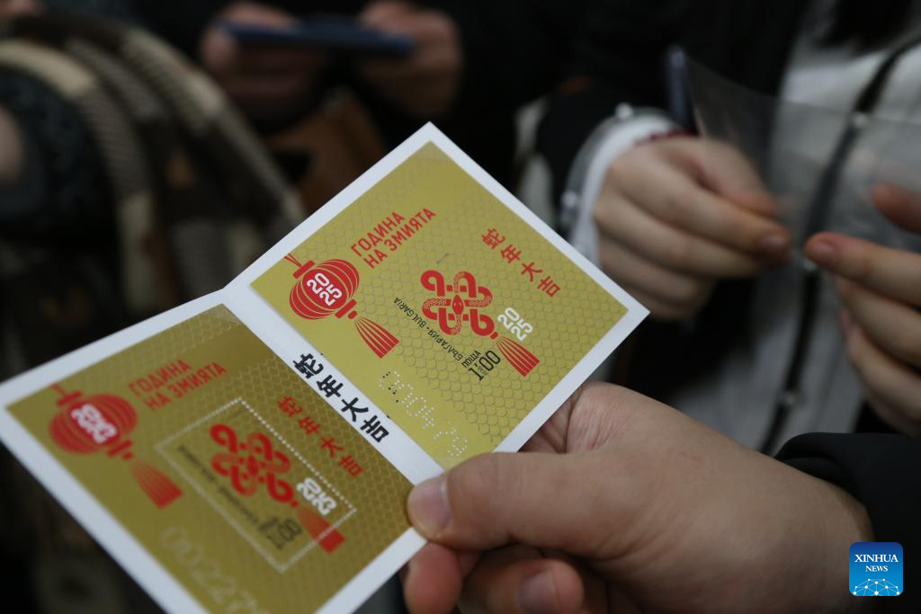 SOFIA, Feb. 25 (Xinhua) -- The Bulgarian Post released a new stamp to mark Chinese New Year, the Year of the Wood Snake, at a ceremony in the Central Post Office Building here on Tuesday.