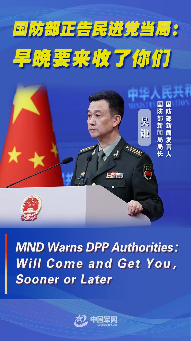 The DPP authorities have an illusion of "soliciting US support for independence" and "resisting unification by force". It is a serious miscalculation of the situation, the public opinion and the comparison of strength. Overreaching itself in such a way is extremely dangerous. We warn the DPP authorities that holding back the tide with a broom will only end up in self-destruction. We will come and get you, sooner or later.