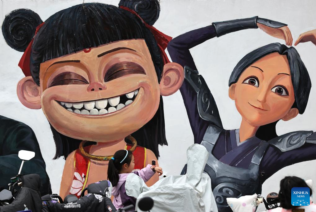 Wall paintings featuring "Ne Zha 2" attract tourists across China