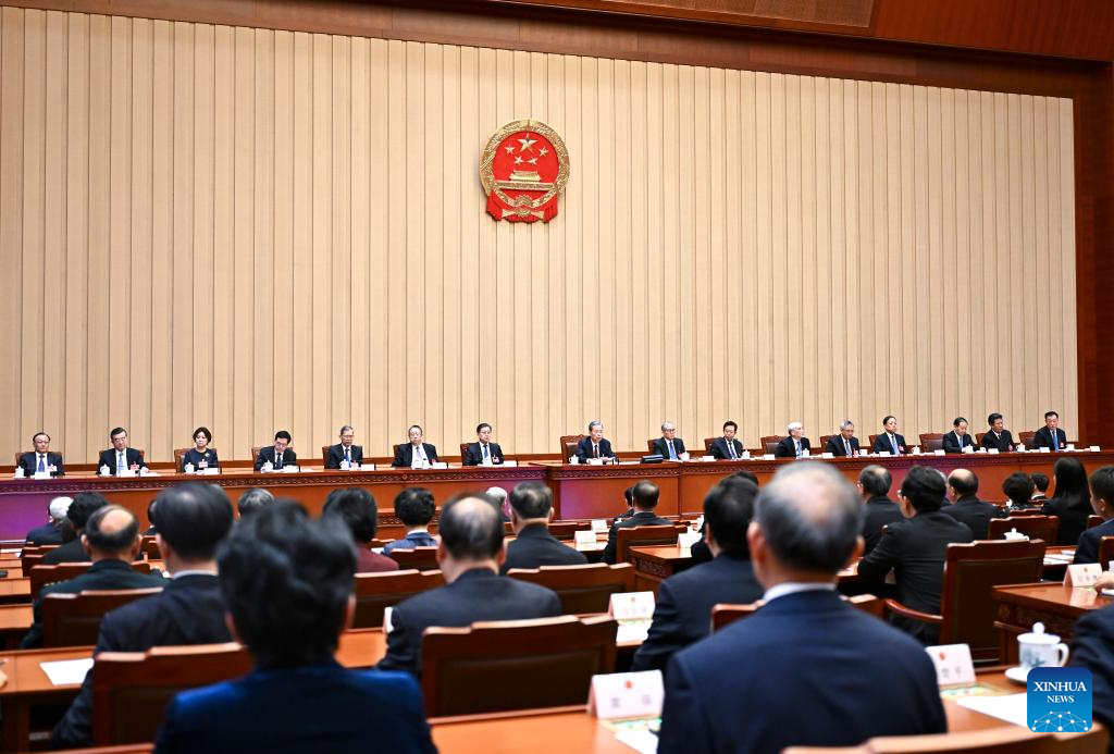 Zhao Leji, chairman of the National People's Congress (NPC) Standing Committee, presides over the 41st meeting of the Council of Chairpersons of the 14th NPC Standing Committee at the Great Hall of the People in Beijing, capital of China, March 4, 2025. (Xinhua/Zhang Ling)