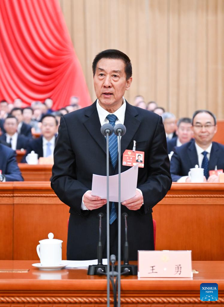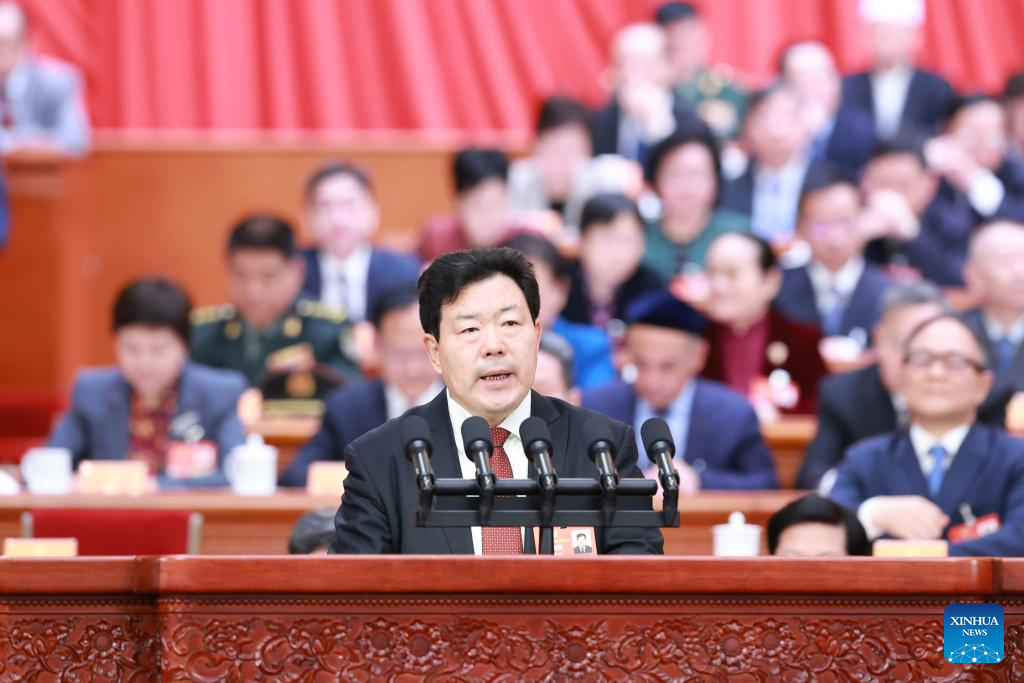 Wang Guosheng, a member of the 14th National Committee of the Chinese People's Political Consultative Conference (CPPCC), speaks at the second plenary meeting of the third session of the 14th CPPCC National Committee at the Great Hall of the People in Beijing, capital of China, March 7, 2025. (Xinhua/Wang Ye)