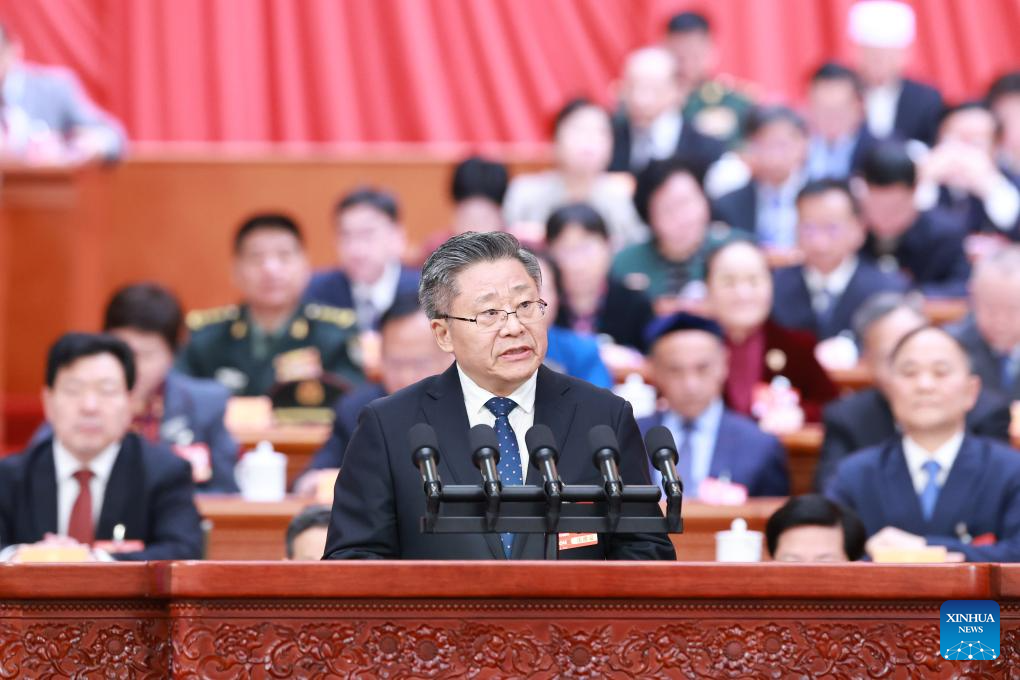 Wang Yong presides over the second plenary meeting of the third session of the 14th National Committee of the Chinese People's Political Consultative Conference (CPPCC) at the Great Hall of the People in Beijing, capital of China, March 7, 2025. (Xinhua/Xie Huanchi)