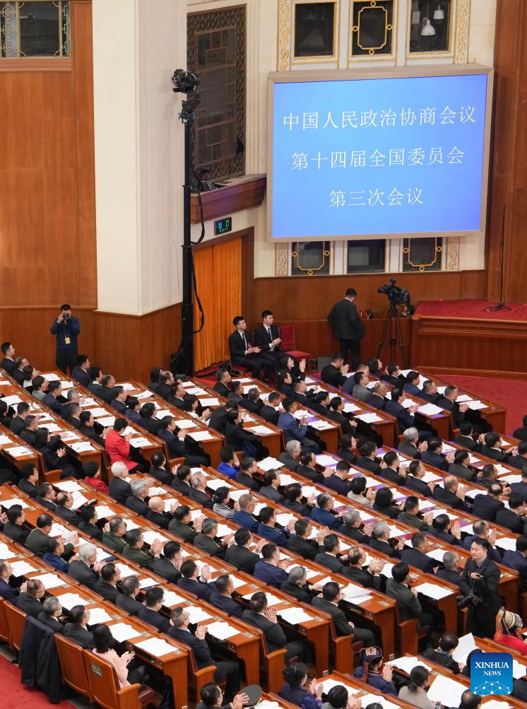 The second plenary meeting of the third session of the 14th National Committee of the Chinese People's Political Consultative Conference (CPPCC) is held at the Great Hall of the People in Beijing, capital of China, March 7, 2025. (Xinhua/Zhou Dixiao)