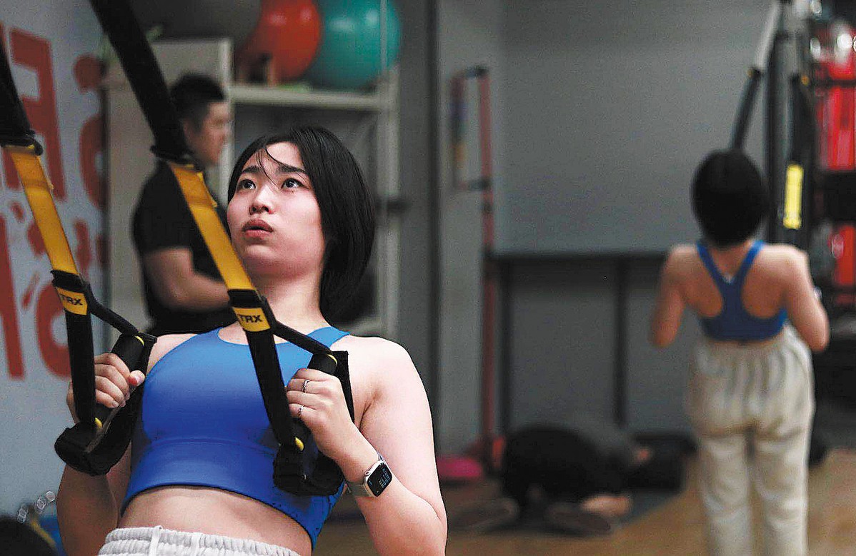 Weng Xiaoxue exercises at a gym in Hangzhou, Zhejiang province. CHINA DAILY