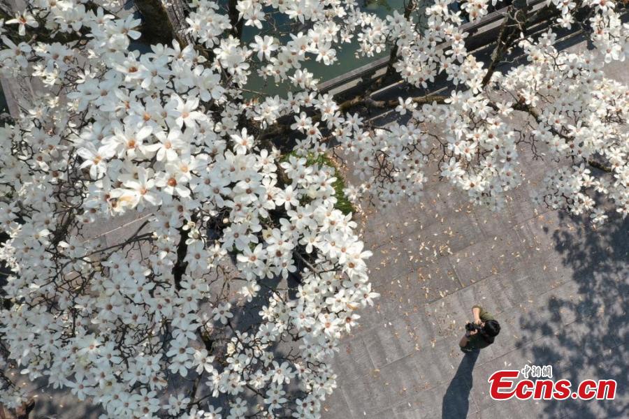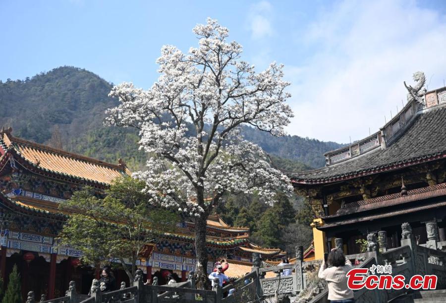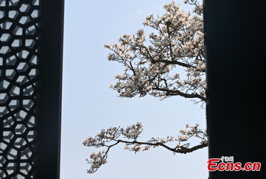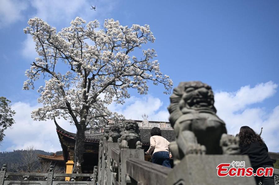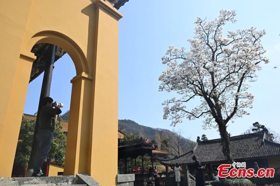 Magnolia flowers blossom at an ancient temple, adding beauty in the spring season in Hangzhou, east China's Zhejiang Province, March 11, 2025. (China News Service/Wang Gang)