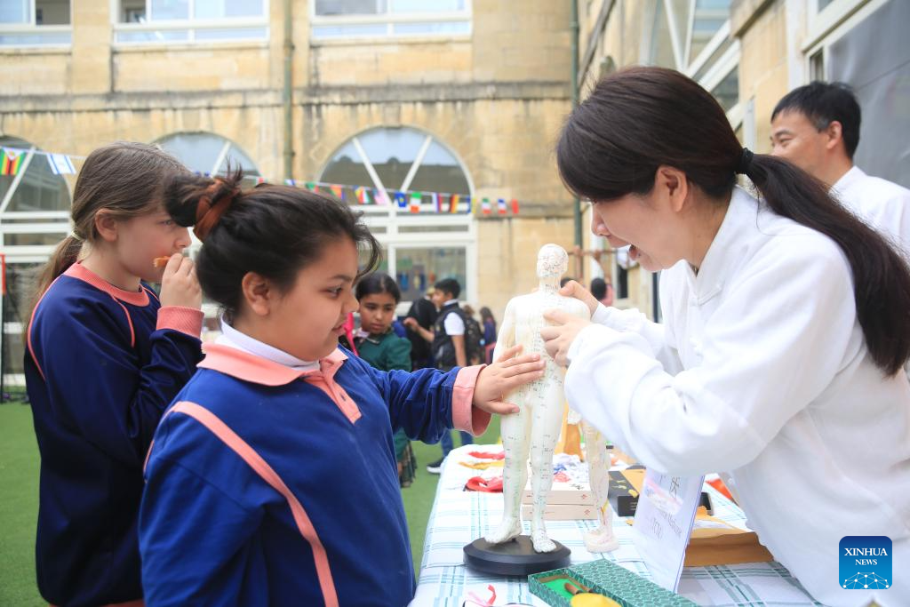 Students visit the Chinese cultural booth during a multicultural event at the Paola Primary School in Paola, Malta, on March 12, 2025. Students at Paola Primary School in southeastern Malta were captivated by an array of Chinese cultural activities during the school's multicultural event on Wednesday. (Xinhua/Chen Wenxian)