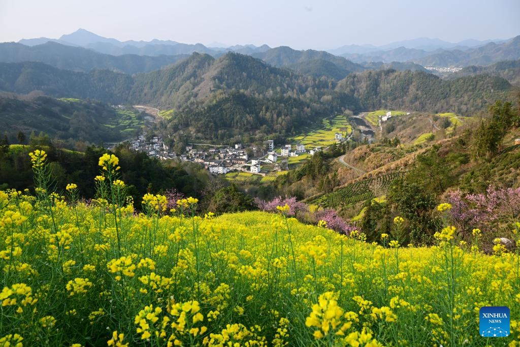 Visitors enjoy flowers at Shitan Village in Shexian County, Huangshan City of east China's Anhui Province, March 26, 2025. (Xinhua/Zhou Mu)