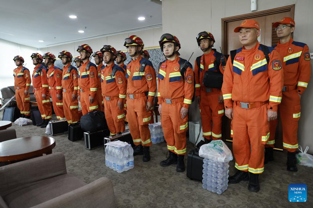A rescue team from southwest China's Yunnan Province arrived in Yangon, Myanmar, early Saturday after a massive earthquake jolted the Southeast Asian country on Friday.