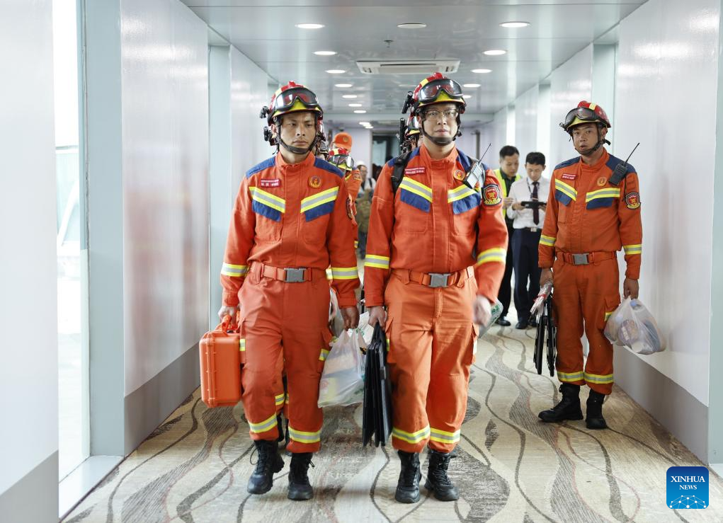YANGON, March 29 (Xinhua) -- A rescue team from southwest China's Yunnan Province arrived in Yangon, Myanmar, early Saturday after a massive earthquake jolted the Southeast Asian country on Friday.