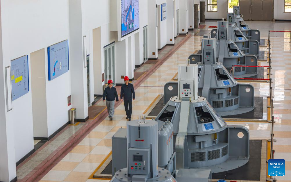 Staff members of the Jiangdu water control project work at a pumping station in Yangzhou, east China's Jiangsu Province, March 25, 2025. The Jiangdu water control project in Yangzhou of east China's Jiangsu Province is located at the source of the eastern route of China's gigantic South-to-North Water Diversion Project.