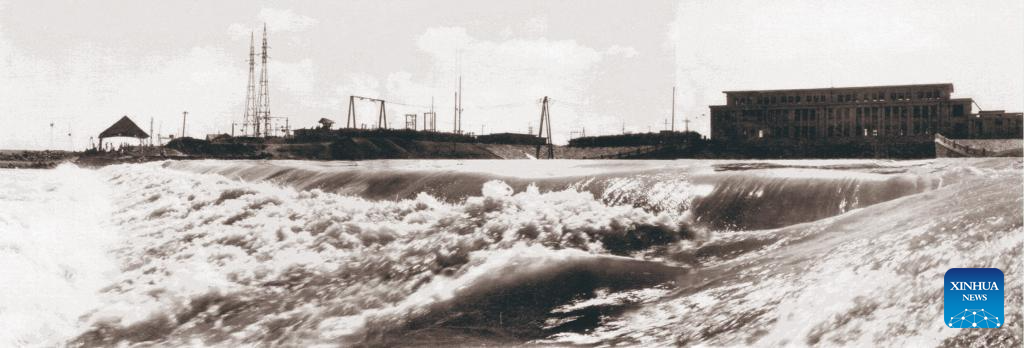 This file photo taken in 1963 shows the inauguration of the first pumping station of the Jiangdu water control project in Yangzhou, east China's Jiangsu Province. The Jiangdu water control project in Yangzhou of east China's Jiangsu Province is located at the source of the eastern route of China's gigantic South-to-North Water Diversion Project.