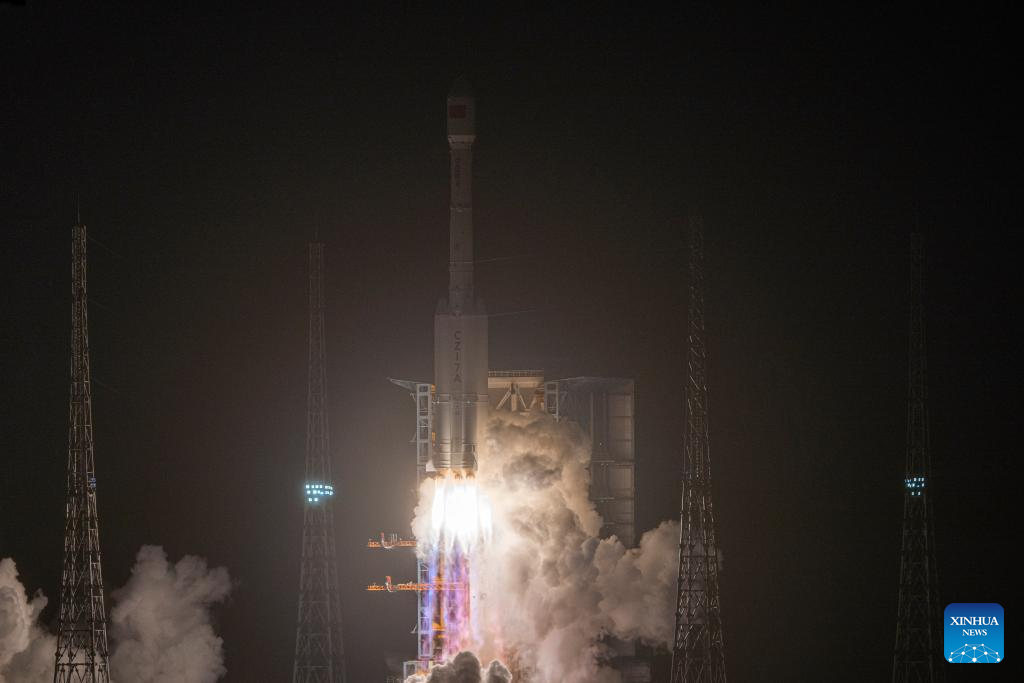 A Long March-7A rocket carrying a new communication technology test satellite blasts off from the Wenchang Space Launch Site on the coast of China's southern island province of Hainan on March 30, 2025. (Xinhua/Guo Cheng)