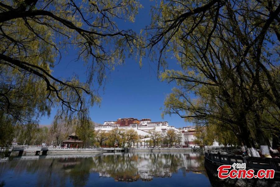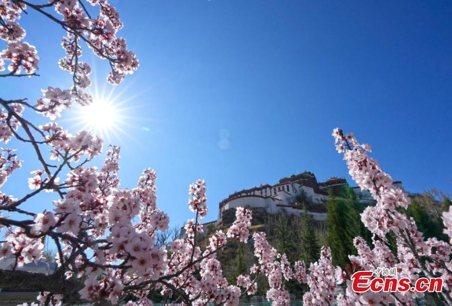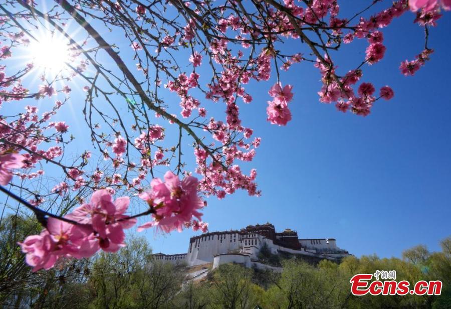 Potala Palace is surrounded by blooming flowers as spring comes in Lhasa, Southwest China's Xizang Autonomous Region, April 1, 2024. (China News Service/Li Lin)