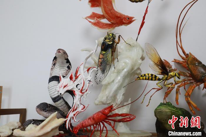 Zhang Bo runs a studio where his elaborate works — including chicken wings, pig trotters and cobras — are showcased in the display window. Each piece is so lifelike it can fool the eye.