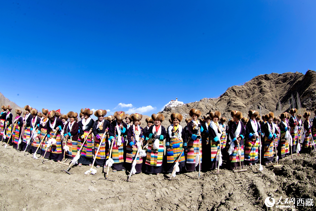 Farmers celebrate the start of spring plowing in southwest China's Xizang Autonomous Region. (Photo/People's Daily Online)