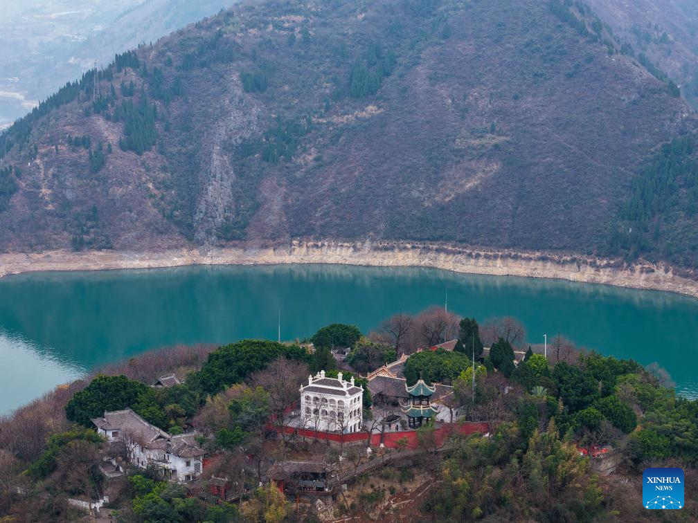 An aerial drone photo shows a view of Qutang Gorge, one of the Three Gorges on the Yangtze River, in Fengjie County, southwest China's Chongqing Municipality, Feb. 13, 2025. (Xinhua/Wang Quanchao)
