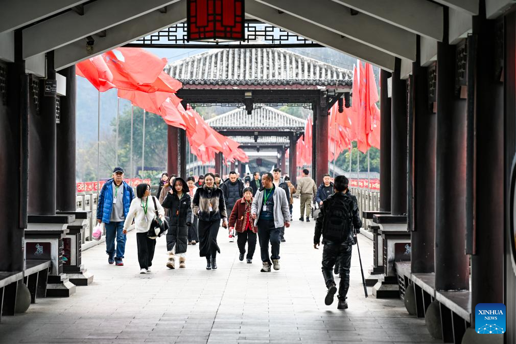 Tourists visit the ancient town of Baidi in Fengjie County, southwest China's Chongqing Municipality, Feb. 13, 2025. (Xinhua/Wang Quanchao)