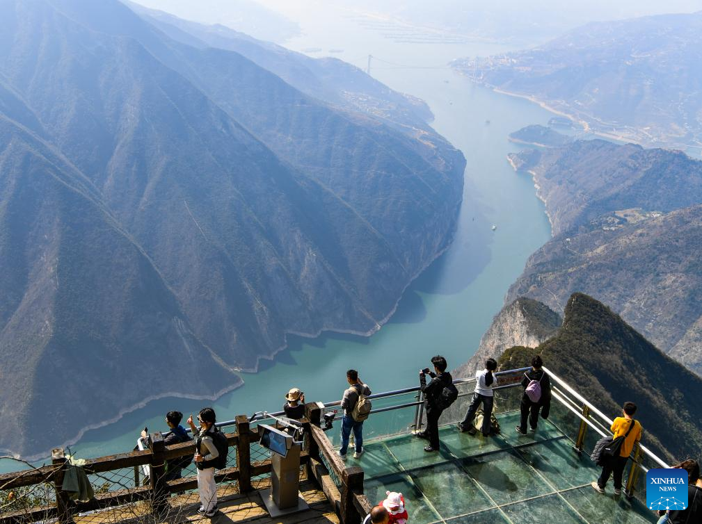 Tourists visit a scenic area in Fengjie County, southwest China's Chongqing Municipality, March 11, 2024. (Xinhua/Wang Quanchao)