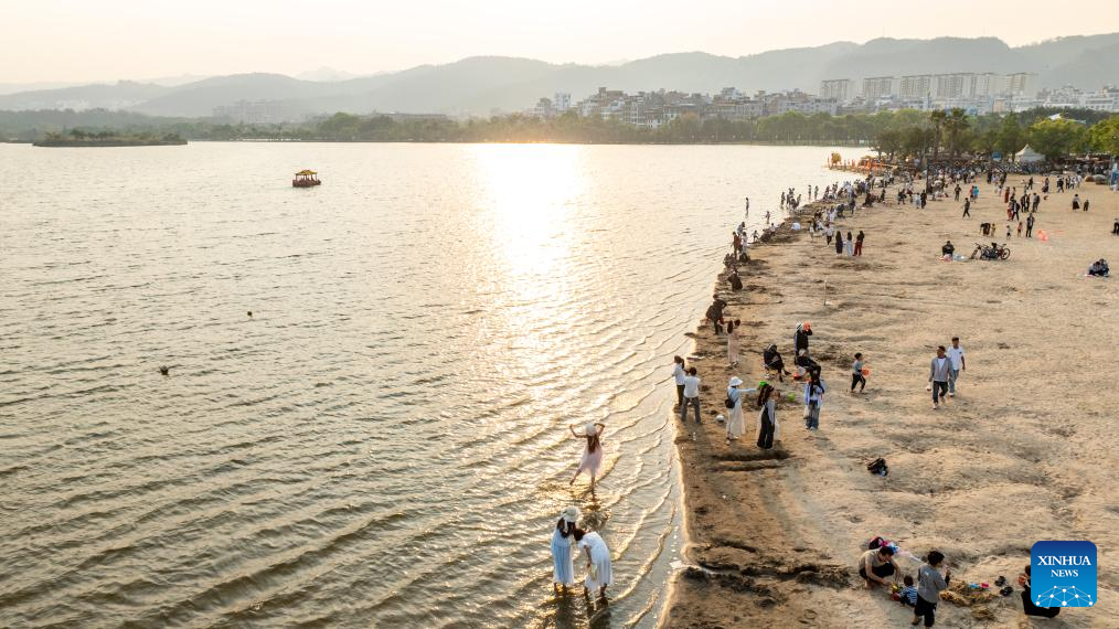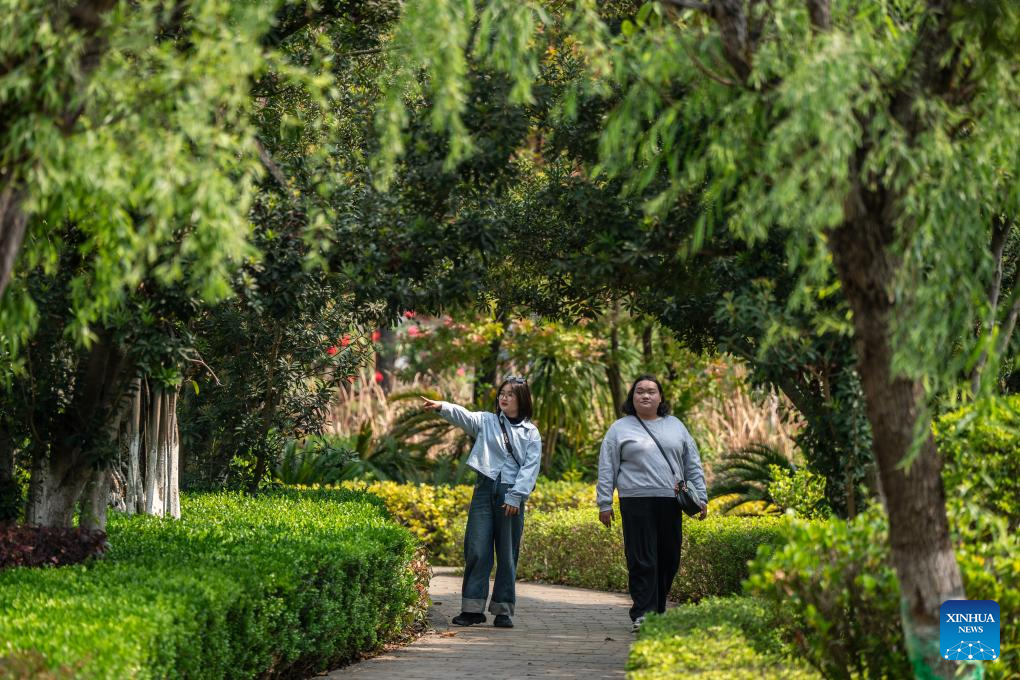 Tourists visit Honghe Nativeland in Mile City, Honghe Hani and Yi Autonomous Prefecture, southwest China's Yunnan Province, April 6, 2025. During this year's three-day Qingming Festival holiday, citizens and tourists came to this city's Huquan Ecological Park, Dongfengyun Town, Honghe Nativeland and other places to enjoy the spring scenery. (Xinhua/Hu Chao)
