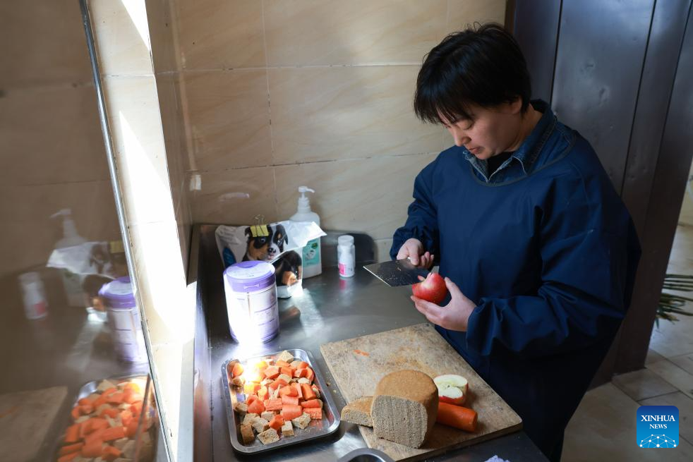 Giant panda keeper Li Rong prepares a meal for the pandas at the Shenshuping giant panda base of Wolong National Nature Reserve in southwest China's Sichuan Province, March 27, 2025. (Xinhua/Meng Tao)