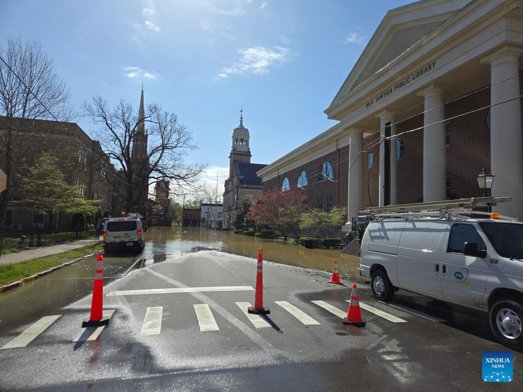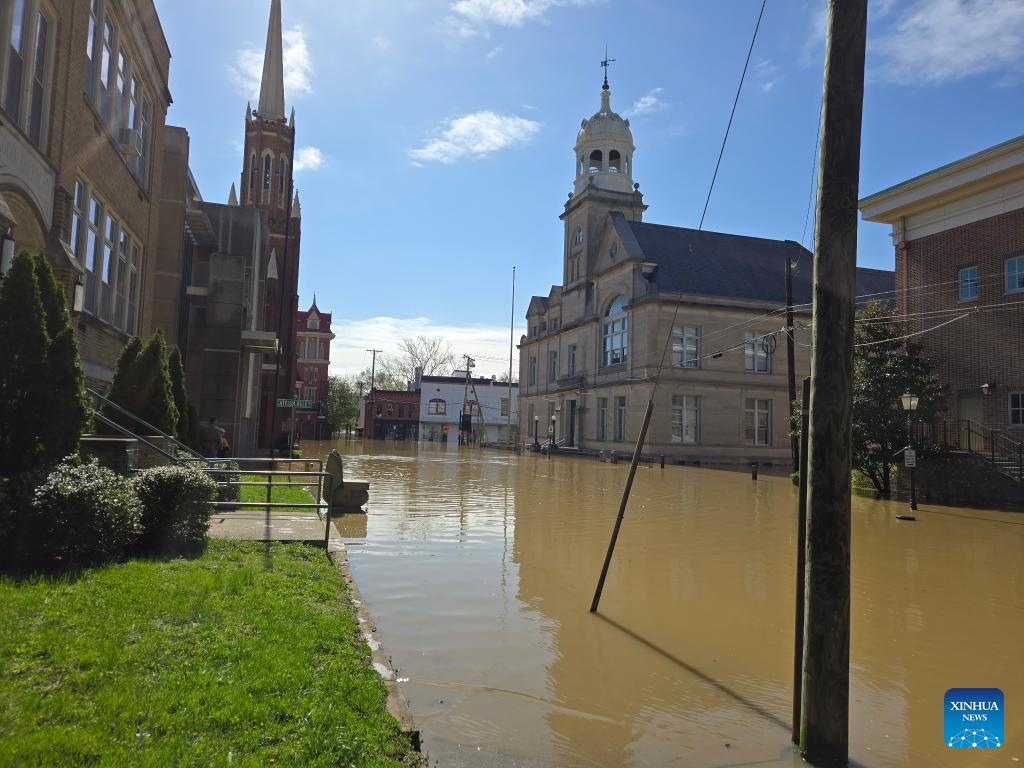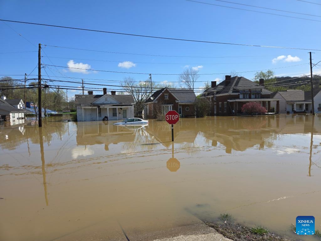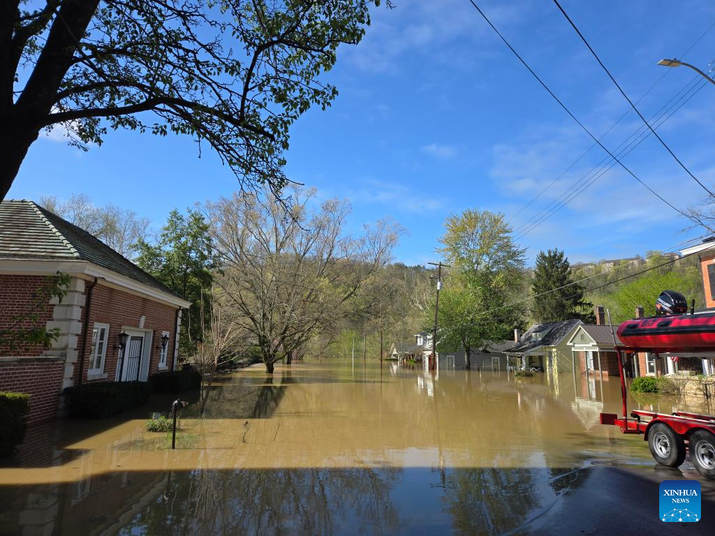 Photo taken on April 7, 2025 shows a waterlogged area in Frankfort, Kentucky, the United States. (Photo by Wang Changzheng/Xinhua)