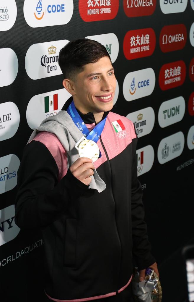 Gold medalist Randal Willars Valdez of Mexico poses after the awarding ceremony for the men's 10m platform final on April 6, 2025. (Photo by Diana Marquez/Xinhua)