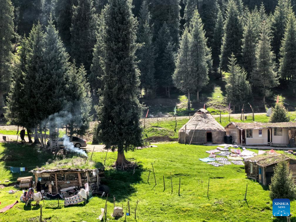 An aerial photo taken on May 15, 2024 shows a pasture in Tekes County, Ili Kazak Autonomous Prefecture, northwest China's Xinjiang Uygur Autonomous Region.