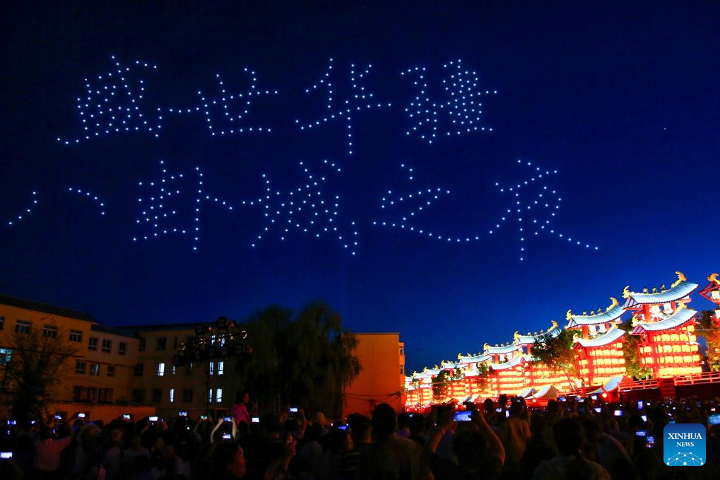 People watch a drone performance in Tekes County, Ili Kazak Autonomous Prefecture, northwest China's Xinjiang Uygur Autonomous Region, June 9, 2023.
