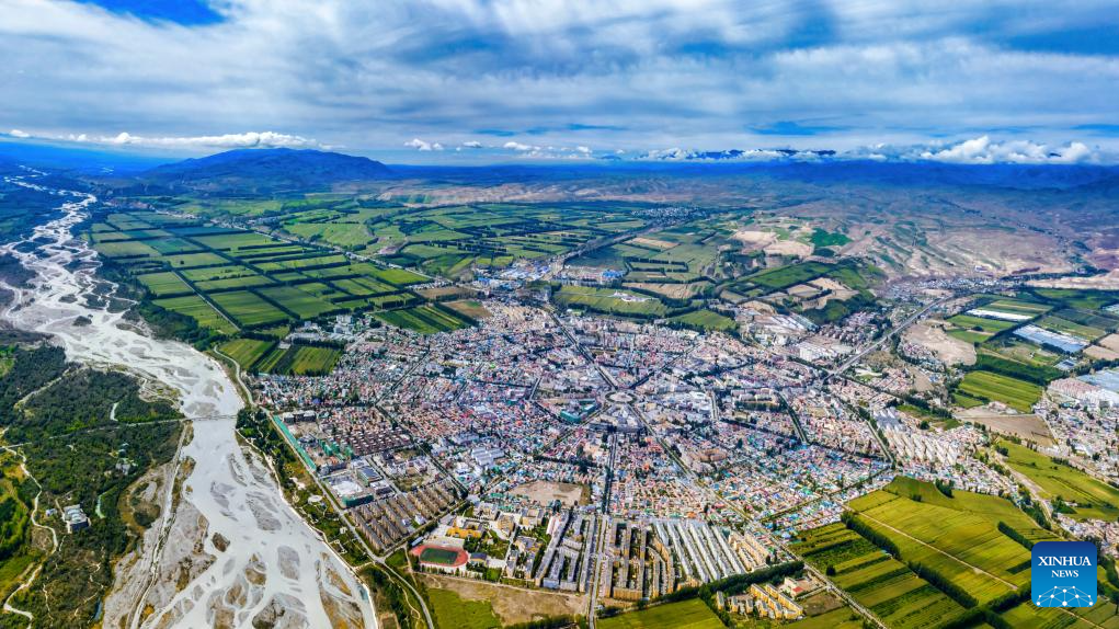 An aerial photo taken on Aug. 29, 2023 shows a view of Tekes County in Ili Kazak Autonomous Prefecture, northwest China's Xinjiang Uygur Autonomous Region.