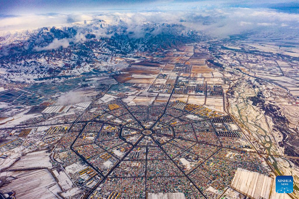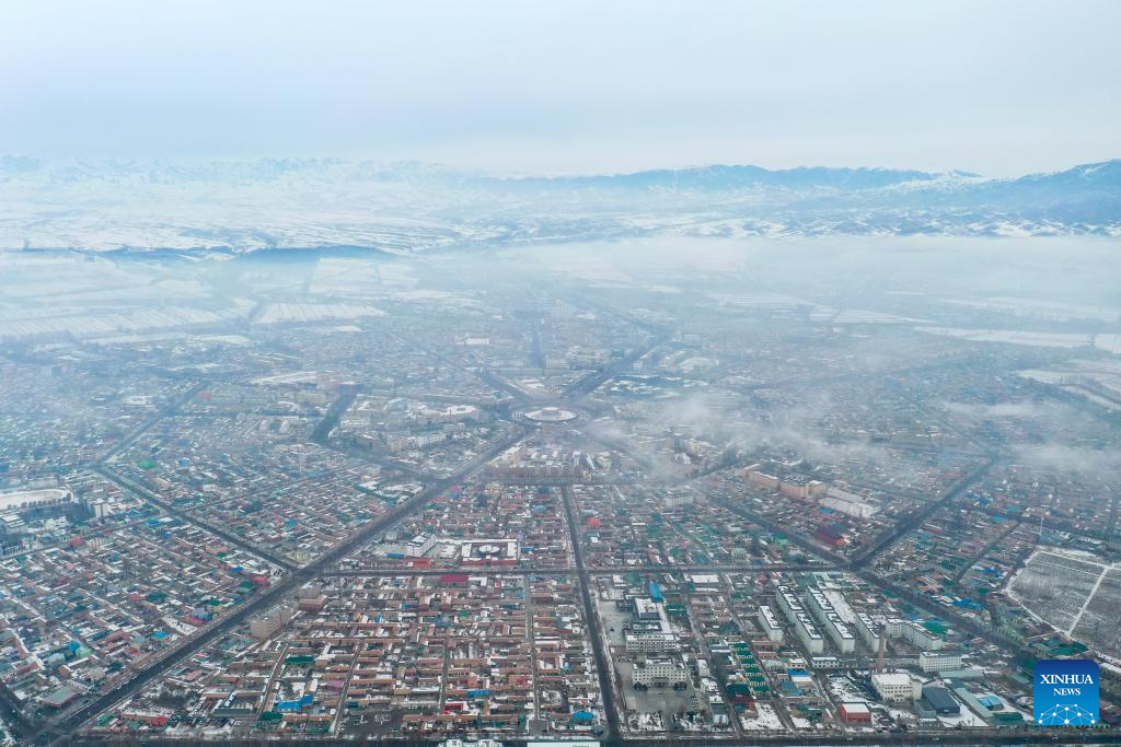 A panoramic aerial photo taken on Jan. 2, 2021 shows a view of Tekes County in Ili Kazak Autonomous Prefecture, northwest China's Xinjiang Uygur Autonomous Region.