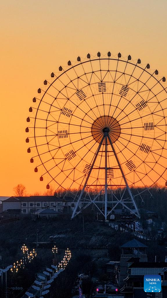 This photo taken on Feb. 22, 2025 shows a ferris wheel in Tekes County, Ili Kazak Autonomous Prefecture, northwest China's Xinjiang Uygur Autonomous Region.