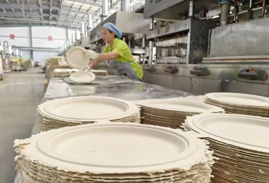"The biodegradable tableware is mainly for export, with shipments going to markets such as Germany, Italy, and the U.S. accounting for over 95 percent of the company's total production," said Xiong Xiaoqin, head of Lyusaike New Materials (Yunnan) Co., Ltd. Xiong said that orders are already booked through September.
