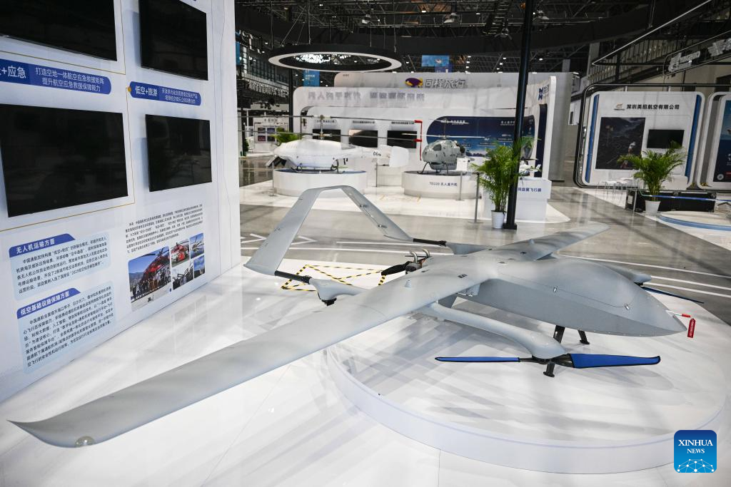 This photo taken on April 10, 2025 shows an unmanned aerial vehicle at the Hainan International Convention and Exhibition Center, the main venue of the upcoming fifth China International Consumer Products Expo (CICPE) in Haikou, capital of south China's Hainan Province. (Xinhua/Pu Xiaoxu)